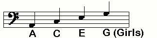 For the bass staff guide posts, I use the words ACE Girls or ACE-G.